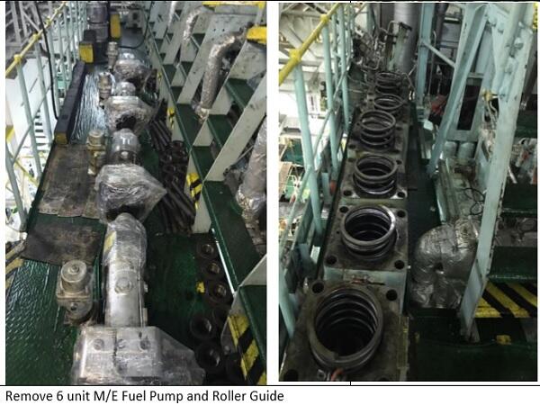 Remove and refit Main Engine MAN B&W 6S50MC Fuel Pump from vessel and carry out workshop overhaul.